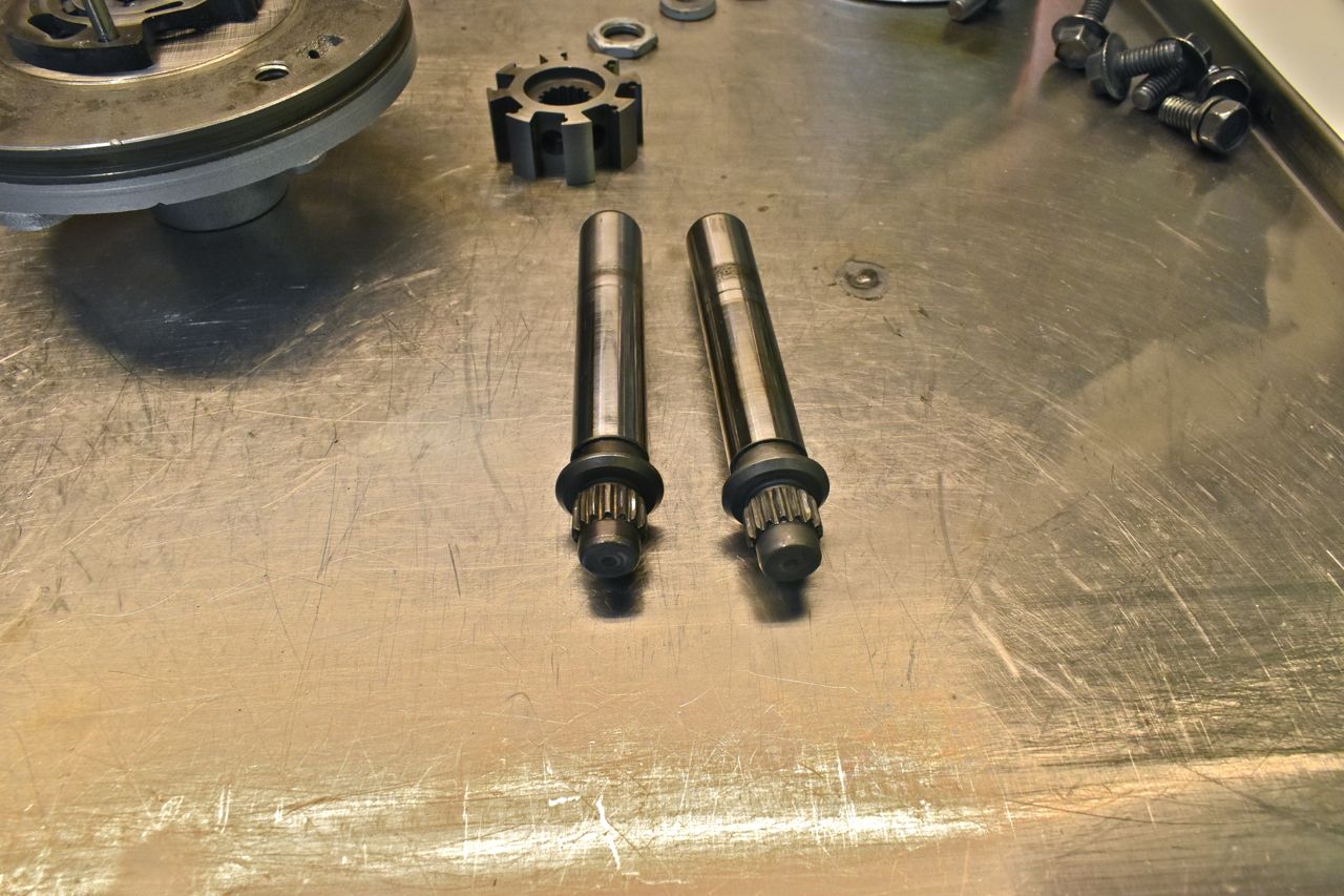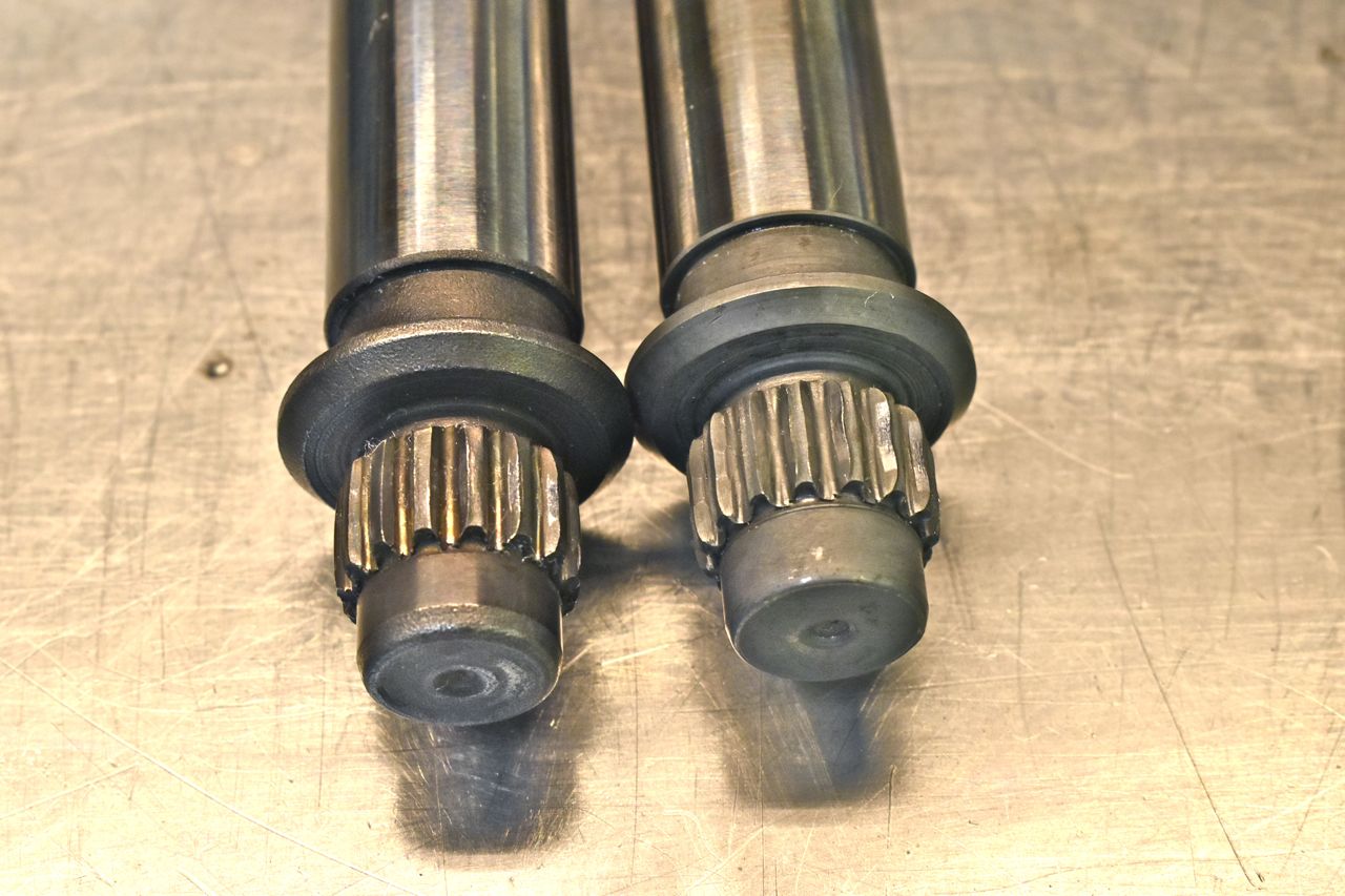 The teeth on the right side shaft are worn more. The shaft on the left is also darker suggesting it had a better heat treat process.
