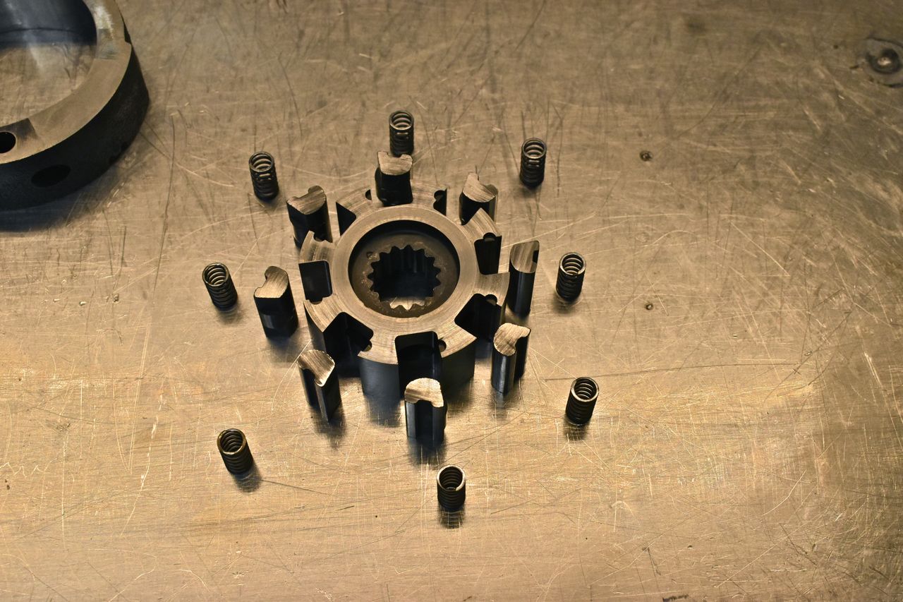 The springs are the high pressure relief (hitting the steering stop) by allowing the plate to lift off and bleed off pressure.