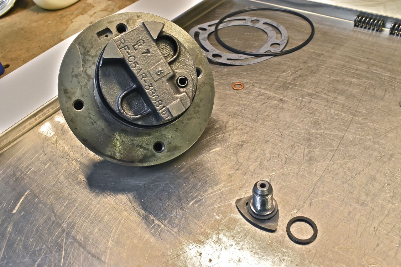 Pump tidbits to go on. Then I put about 1/3 of a quart of ATF in the pump and shook it up to coat everything and it's not enough to come out the low pressure port.