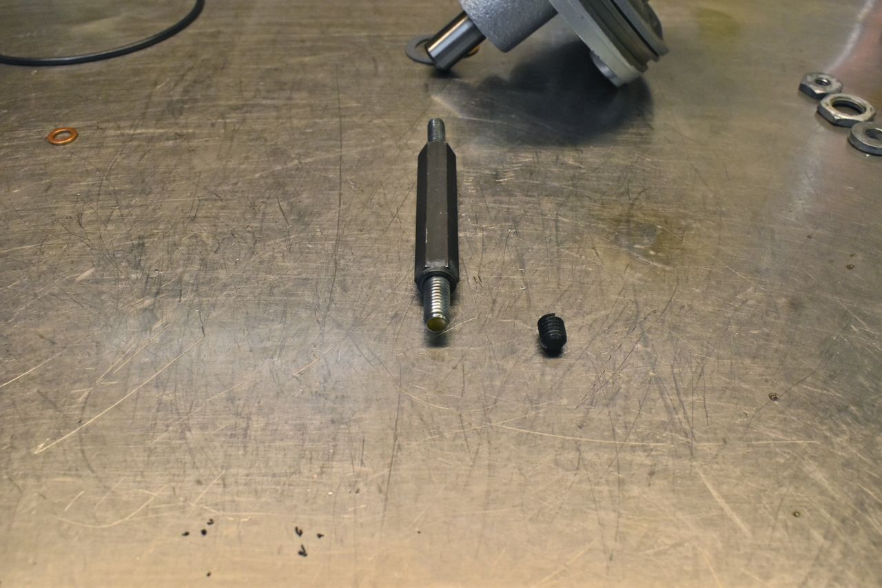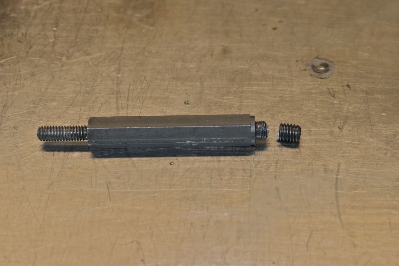 I chucked that hex piece on the lathe, centre drilled and tapped on the lathe. Then grabbed a grade 8 bolt chased the thread down and cut the rest off.