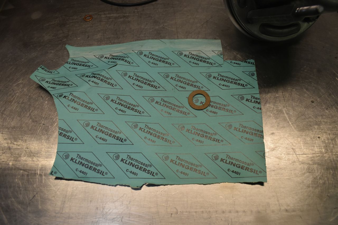 Now I am not a fan of this gasket. I had a bad feeling about the grocery store paper bag gasket when I did the LTD's pump and sure enough, it leaks.