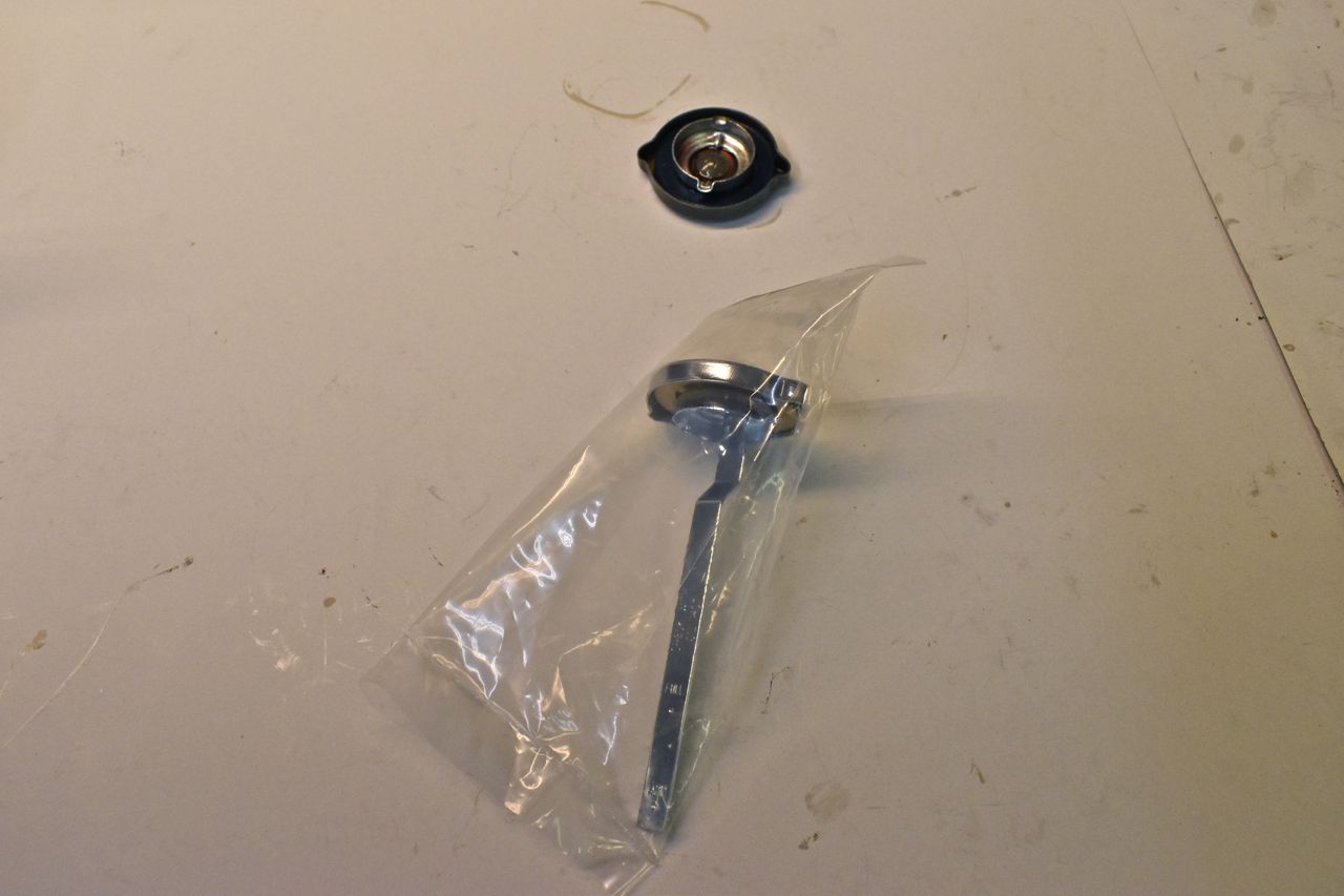 So the original cap had the dipstick broken off. I'm guessing that long stick wiggles quite a bit with engine vibration and that sharp 90˚ bend work hardens and the stick falls off into the pump. Reproductions are inexpensive. I would also assume why the design was changed for '67 for a narrow filler neck with a stouter dipstick.