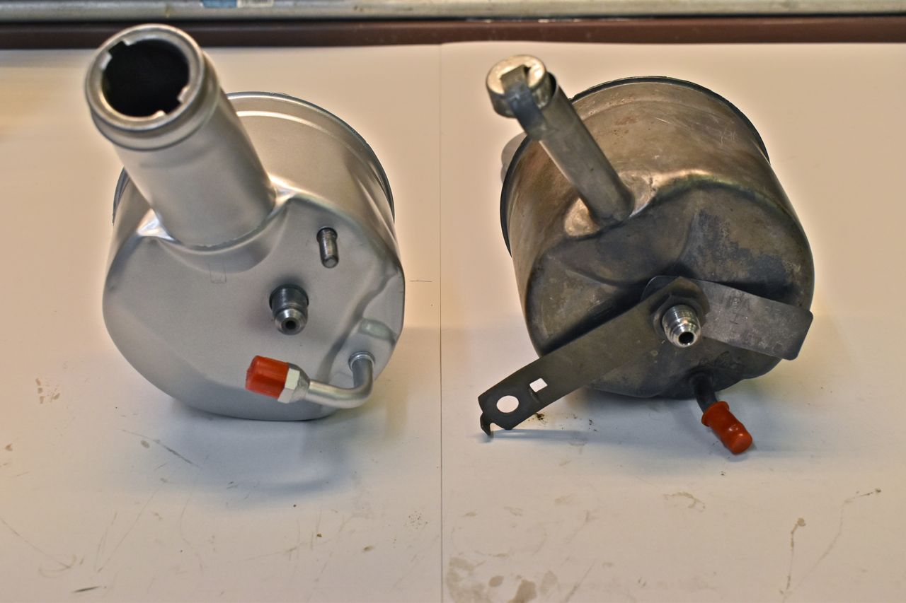 OK so here's the year difference. If you notice the '65/'66 has the additional stud on the back that keeps the back of the pump stable in the bracket. The later year one has a bracket that attaches to the high pressure port.