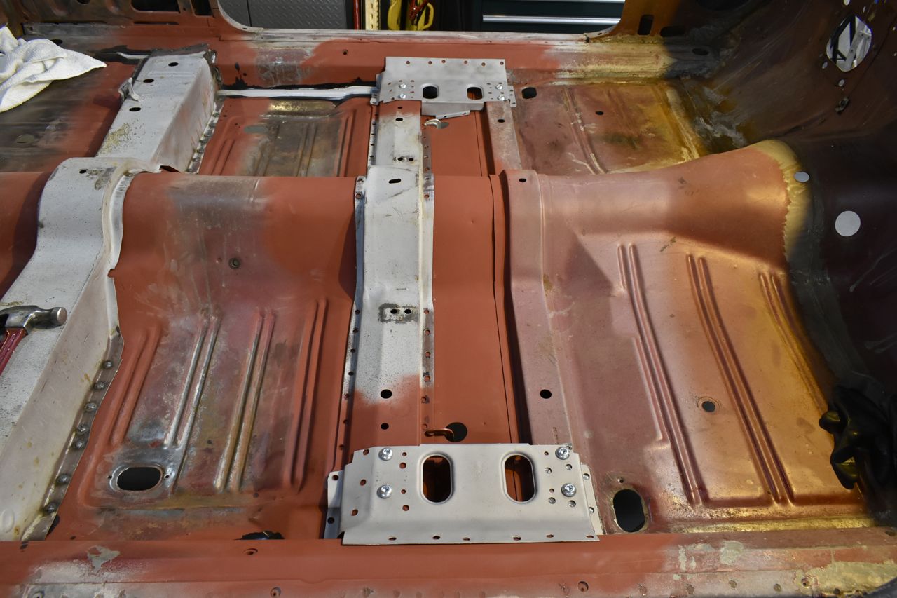 There was a good coating of rust on the bare steel over the years. Those seat plugs dry out and fall off, then road debris, water and salt can enter the enclosed brace area and sit on bare steel. Fortunately this was a Southwest car and I caught it in time, but I have a '68 XL from Colorado Springs (seemed to be from there all its life) and the floor rust started from inside the braces and spread out. Very large sections of the heavy braces are completely rotted away on that car.