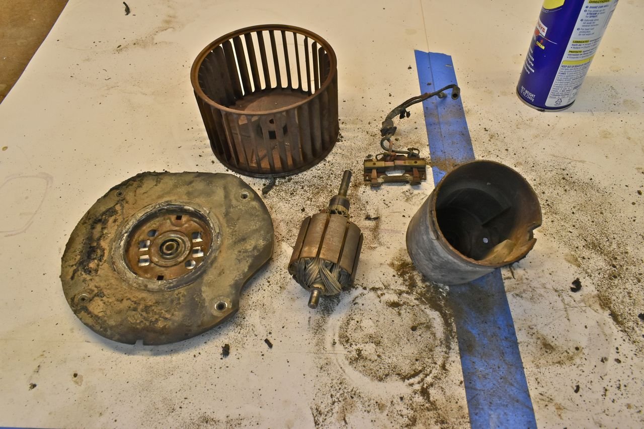 There's two avenues one can go down at this point and they both aren't pleasant. First you can spend possibly hundreds on trying to find a blower motor that's close enough to work and alter the front mounting plate to accept. The other option is to work with what you have and fix that. Anyone that knows me pretty much can guess the route I'll take.