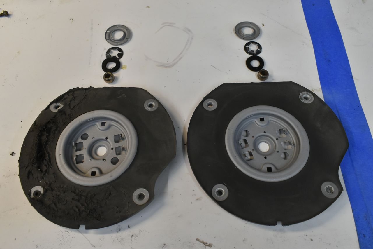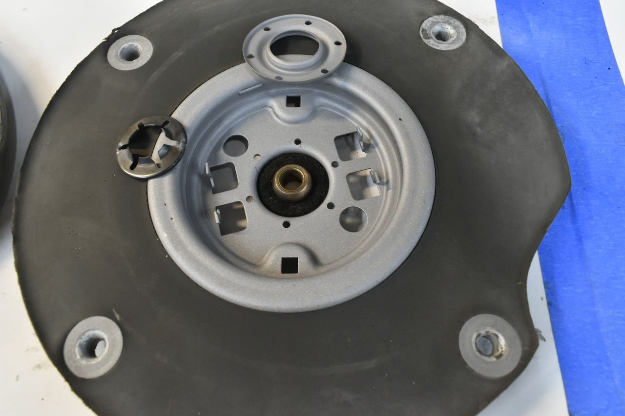 This is why the front bushings were spinning or just fell out. The spring retainer plate broke on both. One broke in two. By some miracle I was able to TIG weld this thin spring metal back with the current dialed down to 20 amps.