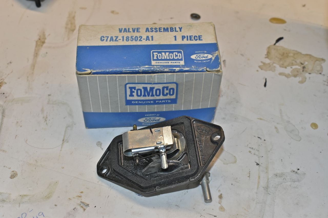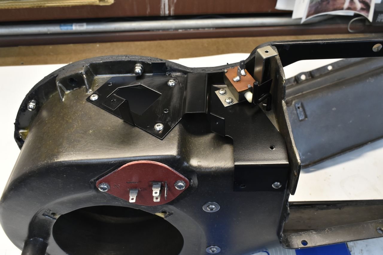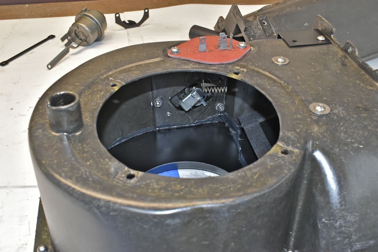 Here you can see the heater thermostat bi-metal strip sampling air temperature inside the plenum. The idea Ford had with this is it would hold the heated air temperature out of the floor or defrost constant at your HOT- COLD setting. It would increase or dump vacuum to the coolant valve to control heater core temperature.