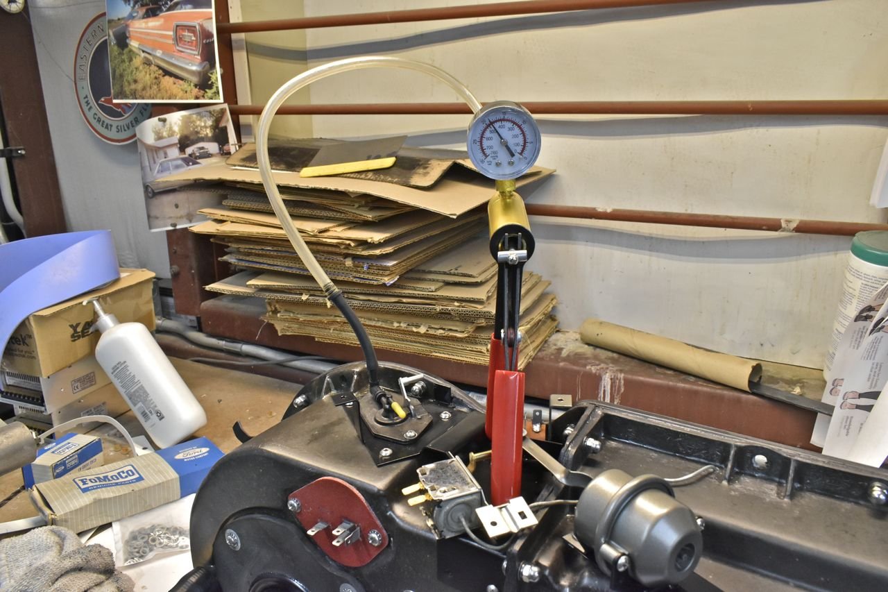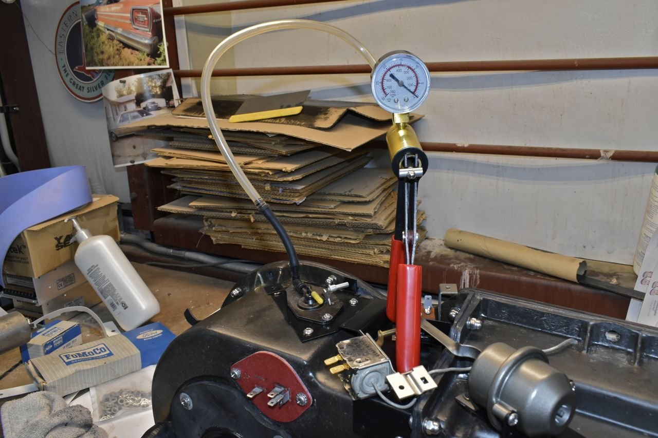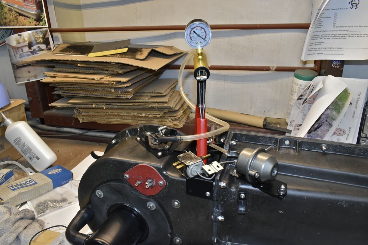 Now flip the control arm towards the camera. It should dump that vacuum. It's dumping it inside the plenum in case you're wondering. This tests the action of both needle valves and the diaphragm. This passes.