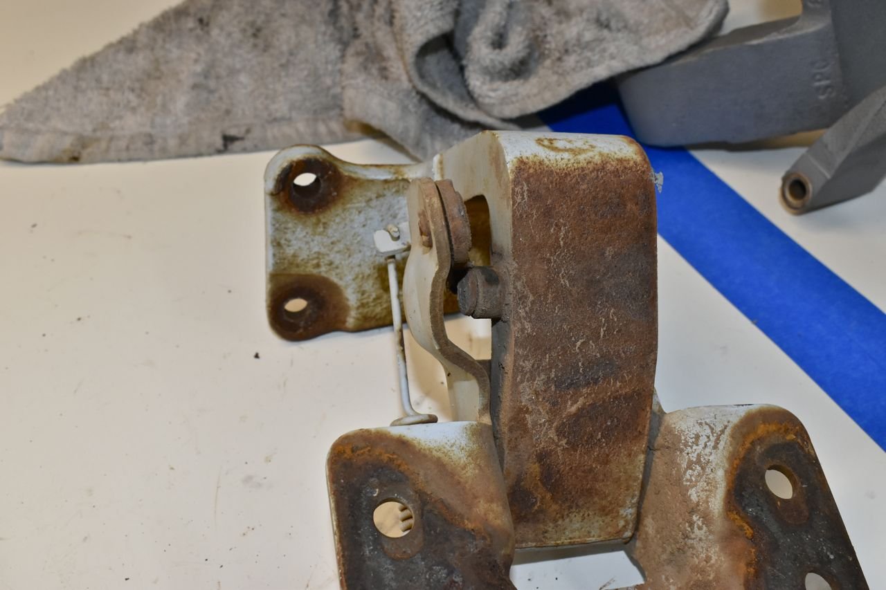 It's getting close to test fitting doors on the body shell and so hinges need to be addressed first. Most of these derelict cars are so trashed and the hinges weren't immune. I started digging through the pile to find good candidates for restoration. I went through quite a bit before I found pieces to make a good set.