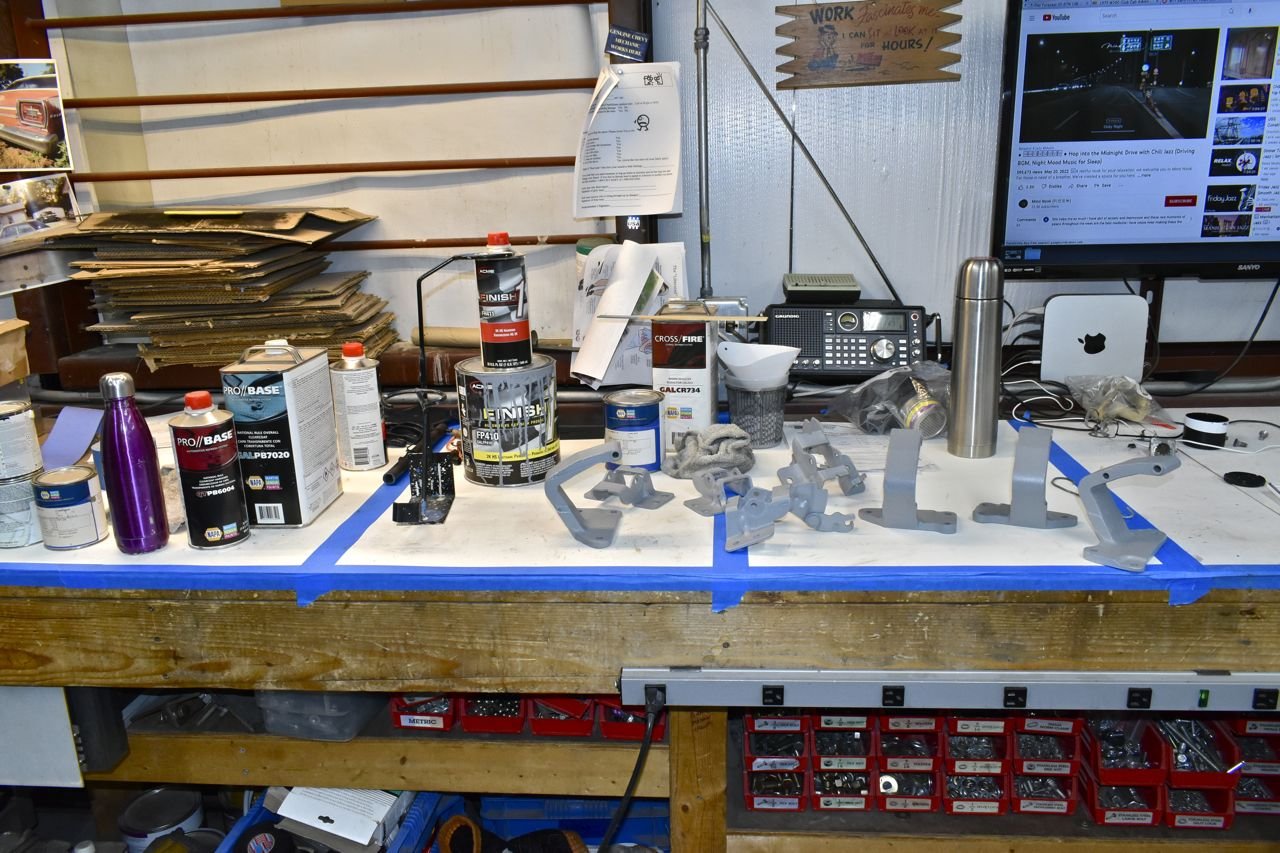 These are the first parts to get the colour of car. I am using all Napa 2 stage paint. I have all the parts primed here after metal etch.