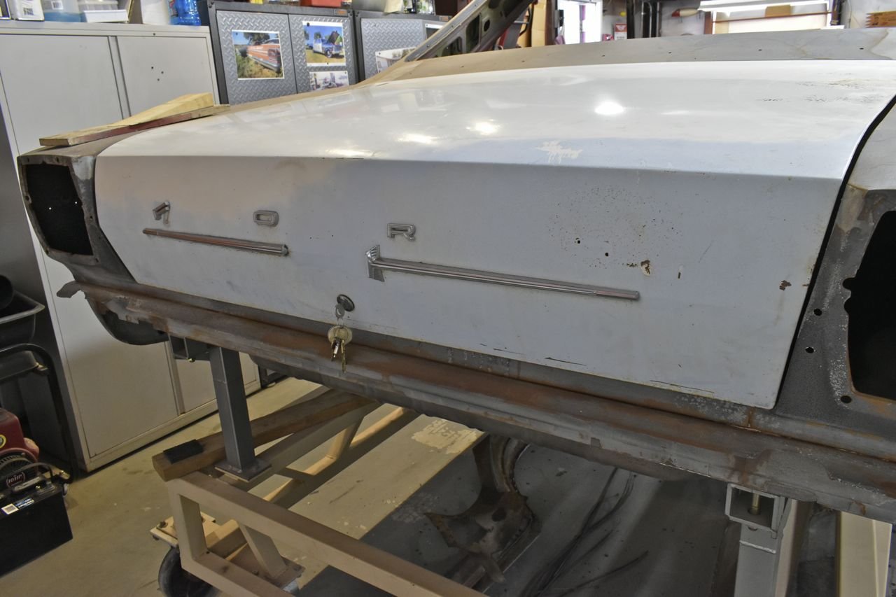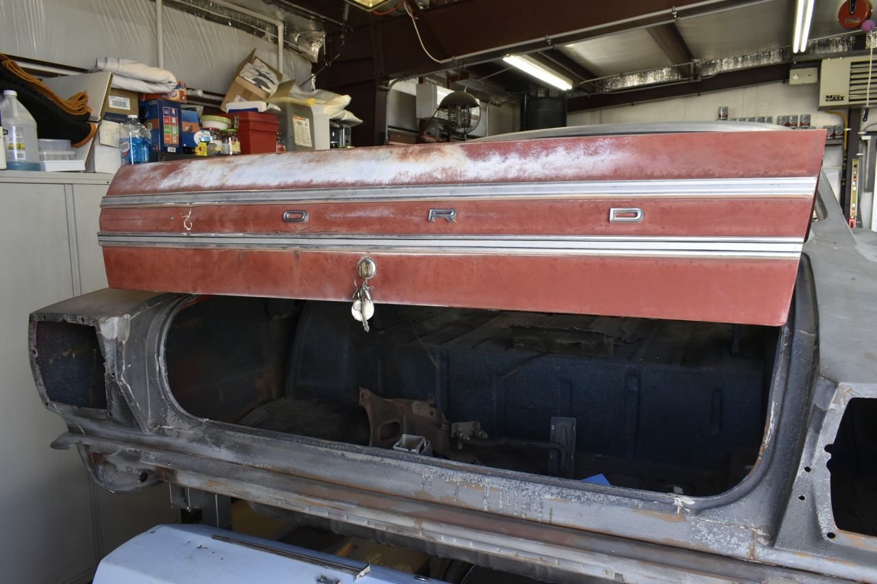 This is the deck lid that came with this body, however it has the plain jane galaxie 500 trim and not the galaxie 500 XL trim. Plus it's a complete Bondo bucket. Sure it can be fixed and altered but in the interest of saving time, I have some other possibilities.