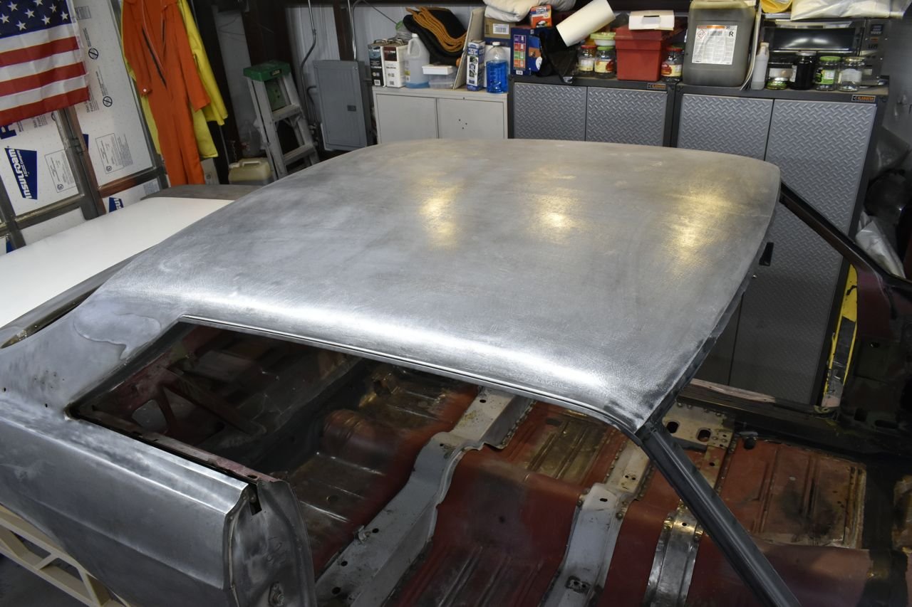 I stripped the roof and removed all the noticeable dents with the hammer, dolly and spoon.