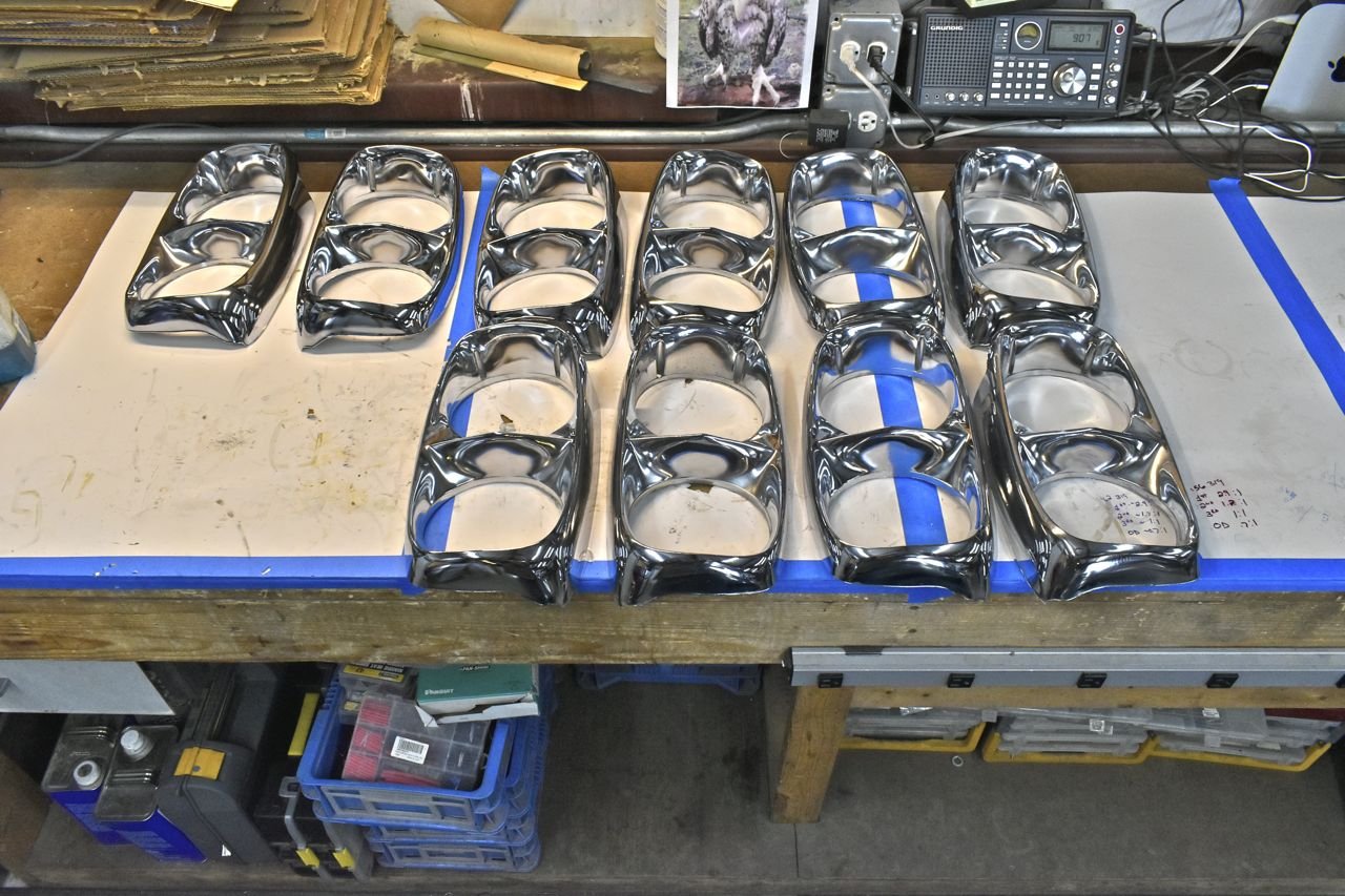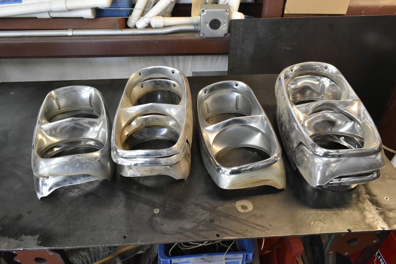 I started with the bulb retainers. I had a bunch of these headlamps so in order to pick the best parts, they all have to be cleaned and inspected. In other words loads of polishing is in order.