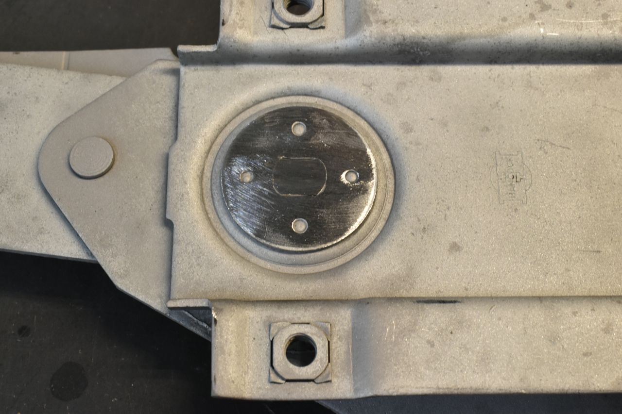 There's not enough room for conventional hardware, so heavy duty solid steel rivets need to be used to reattach the sector gear. I just used a 20 ton press to set these. Then I proceeded to R&R both regulators like the first one.