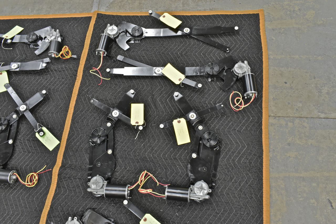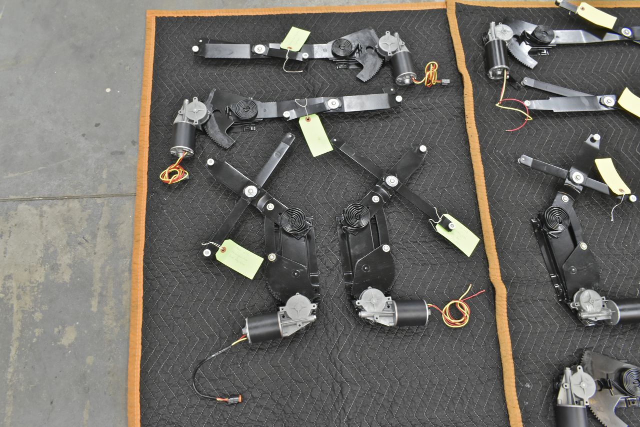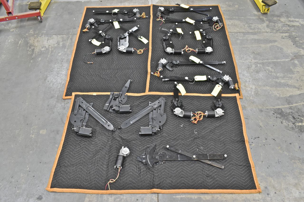 Here's the final results. I'm starting to feel like a remanufacturing house. This is not to be taken lightly. The average time spent in man hours per Ford regulator is approximately 8 full hours. This took loads of labour, even the epoxy paint I used is getting expensive. Some general numbers are 350 dollars just in paint, add in the cost of buying the original regulators and about 500 dollars in aftermarket ACI motors that needed rework right out of the box and some couldn't even be used, not less forgetting about hardware and the nylon 6-nylon 6/6 used to recreate the rollers and you can see the expense in this. With a shop time of even a low 75 per hour (most shops are well above 100 per hour and large restoration shops are around 150 per hour), it's around 3000 dollars per set when its all said and done and that's throwing the engineering and testing time for the rollers in for free.